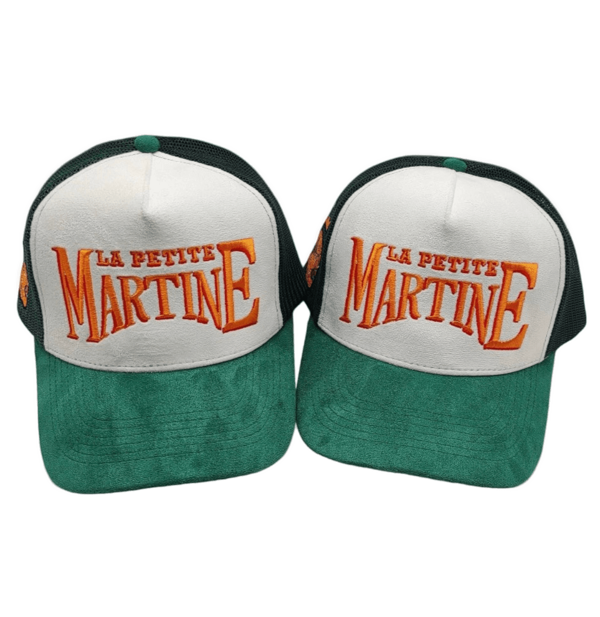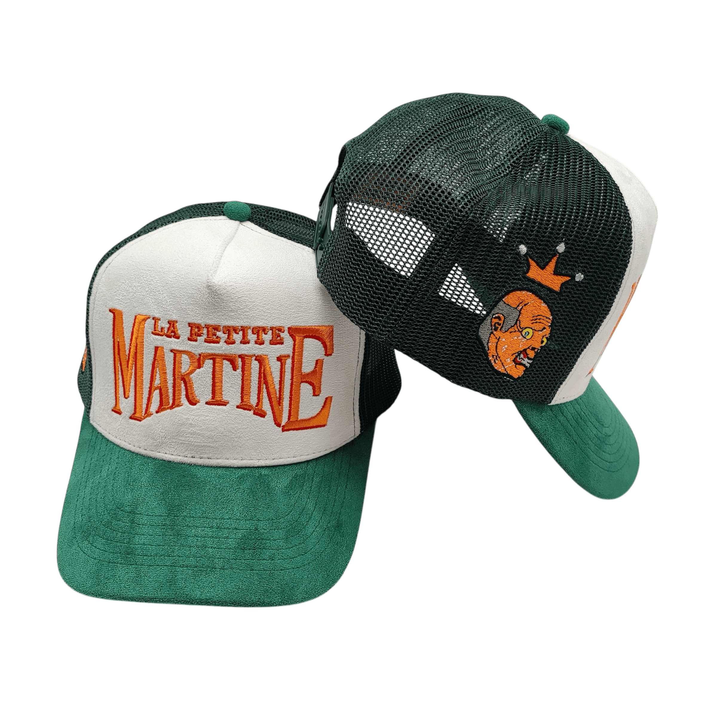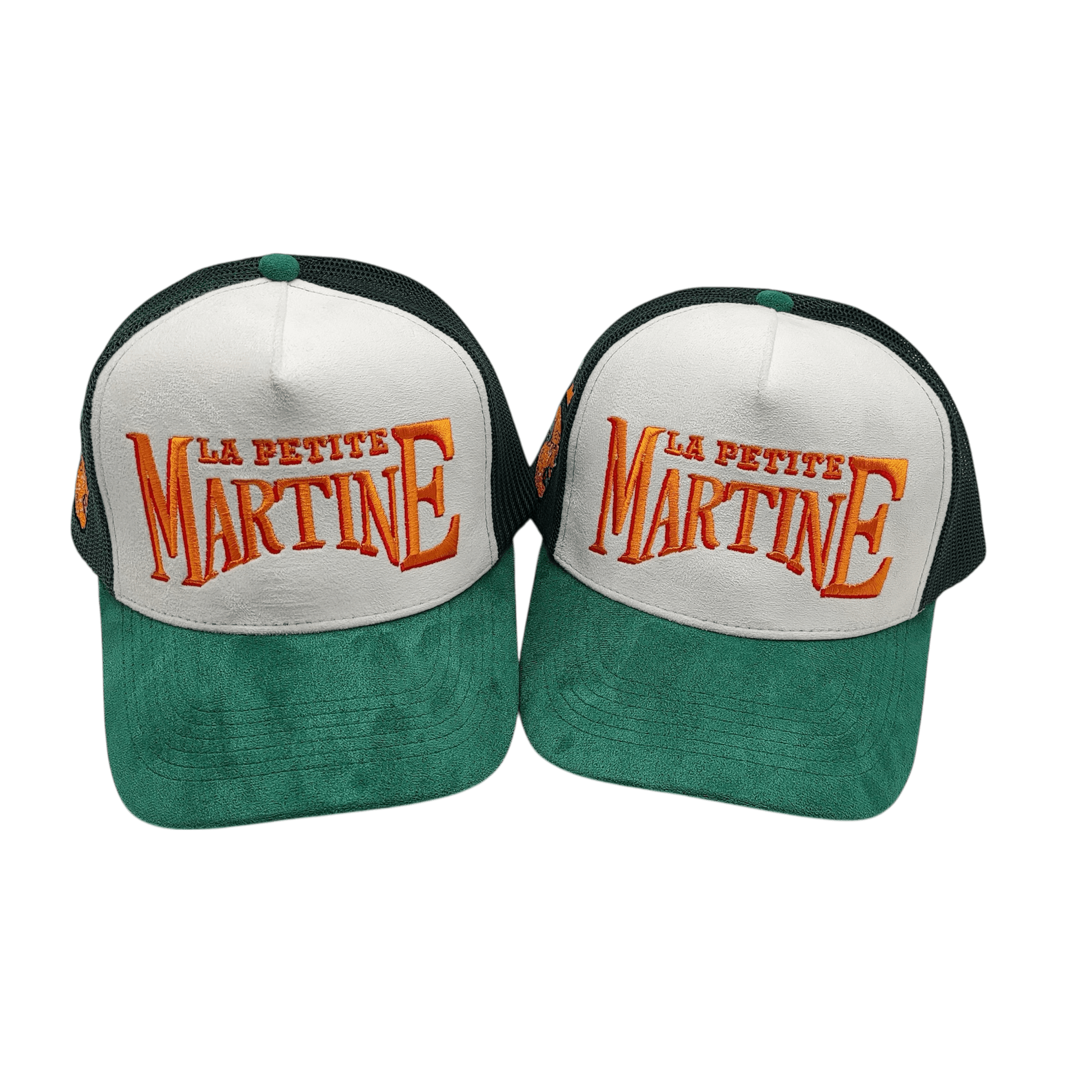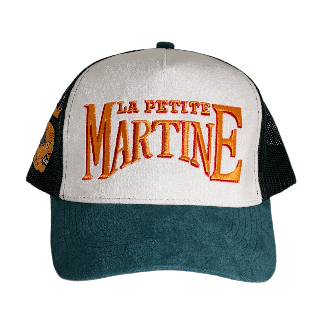 Première collection “La Petite Martine” trucker hat avec broderie sur l’avant et texture effet daim.